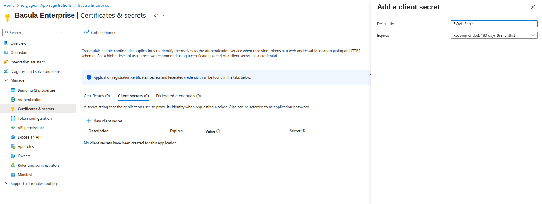 When running BIM and trying to install the Bacula Director and BWeb, BIM asks all the questions to configure OIDC/OAuth2.0 properly. However, there is also an alternative approach that can be more convenient when entering complex values: using a pre-created configuration file.