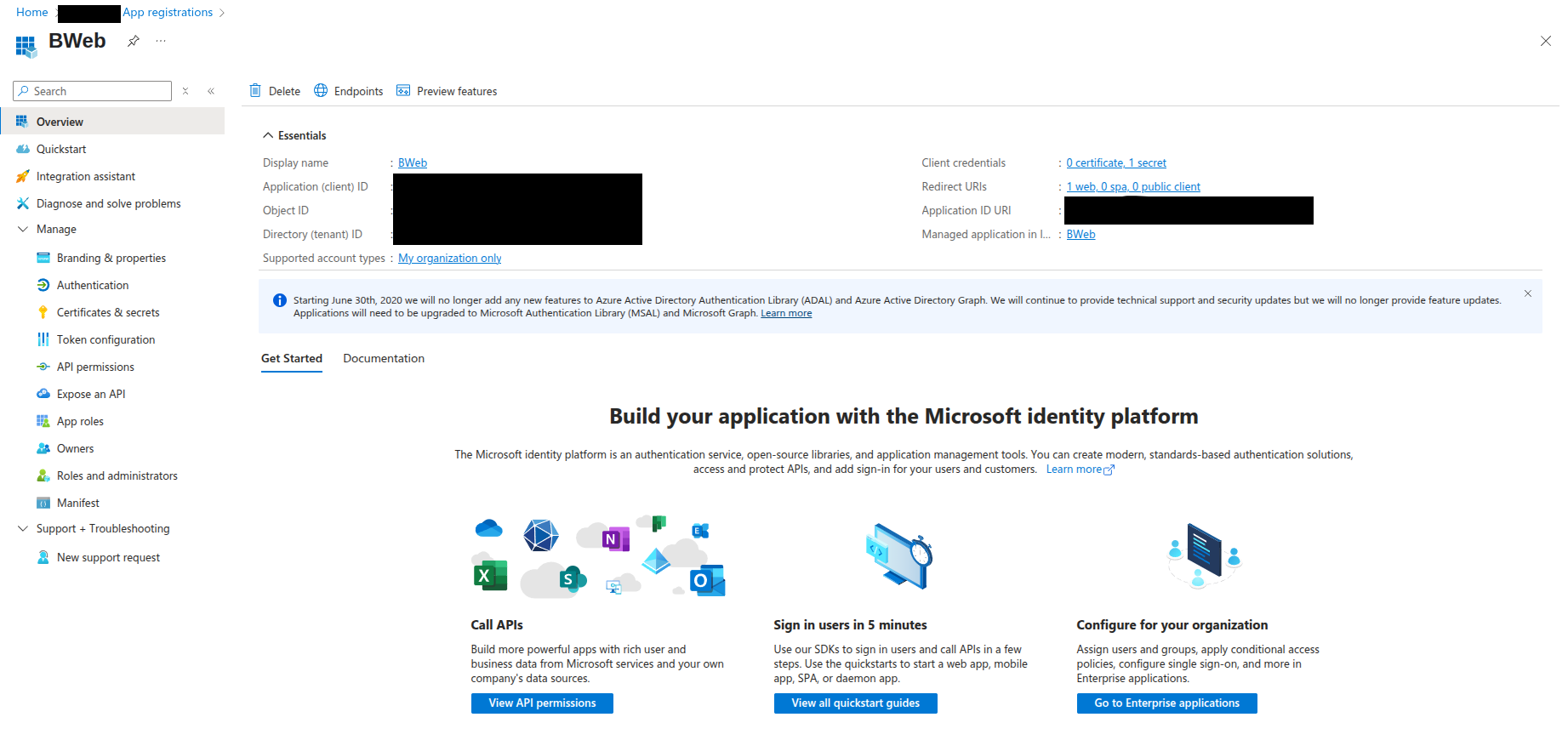 Deploy an application in the IdP representing BWeb. This application contains parameters such as the redirect URI pointing to the location of BWeb.